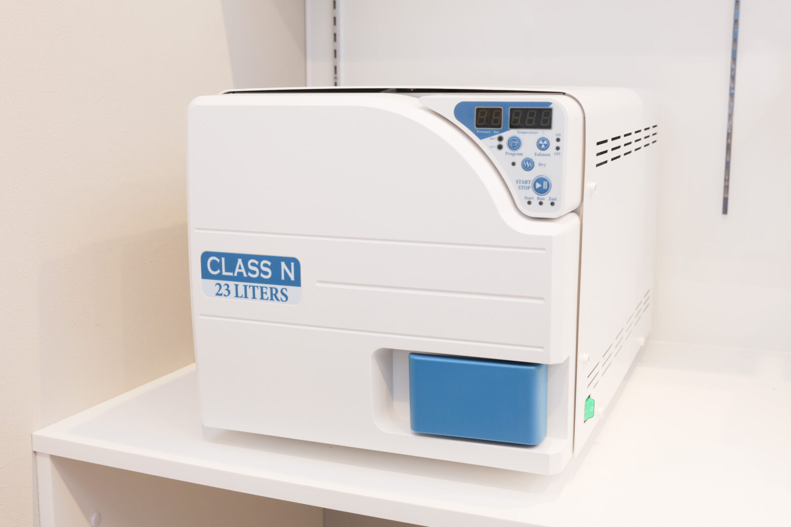 ヨーロッパ基準EN13060のクラスB規格をクリアする「○○○○」を導入しています。減菌前と滅菌後の乾燥時にチャンバー内を真空状態とすることにより、通常のオートクレーブでは困難な中空のものや多孔性のものを安全、確実に減菌します。