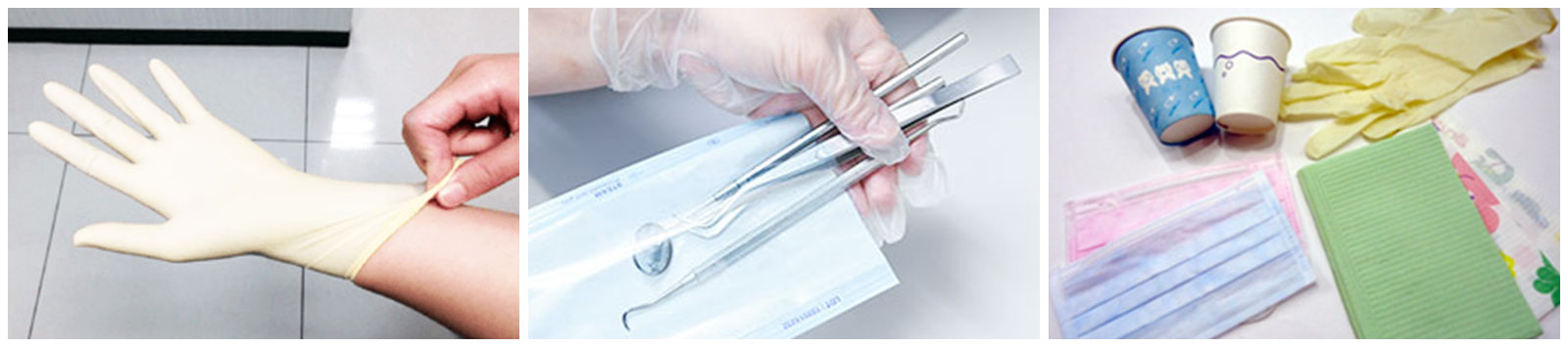 衛生管理は医療機関として、当然の責務であり、基本です。当院では、滅菌、感染予防のためのマニュアルを構築し、誰が行っても高いレベルでの滅菌ができるよう体制を整えていますので、安心して治療に専念いただけます。エプロン、紙コップ、グローブはすべて使い捨てのものを利用しており、患者さんごとに交換しています。